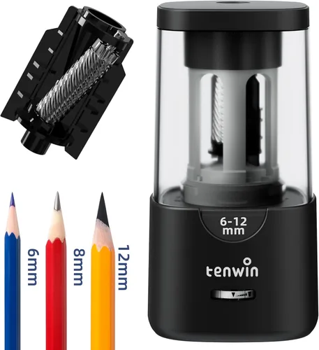 Tenwin Sacapuntas eléctrico – Parada automática, afilado y rápido, para lápices de colores de 0.23 a 0.47 pulgadas, ideal para el hogar y el aula