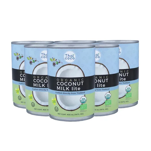 Thai Coco Leche de coco orgánica ligera enlatada, leche de coco sin azúcar, 100% orgánica, certificado orgánico USDA, para batidos y café, sin BPA