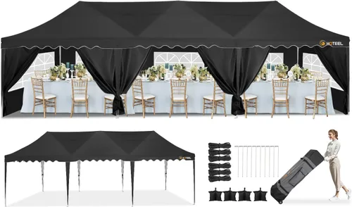 HOTEEL Carpas grandes de 10 x 30 pulgadas para eventos al aire libre con 8 paredes laterales, toldo desplegable portátil fácil de instalar con bolsa