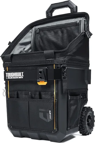 Toughbuilt L Rolling Massive Mouth Bag Pro Garde calidad, apertura masiva patentada para una visibilidad clara y acceso rápido, construcción de cuerpo duro con paneles de bolsillo remachados.
