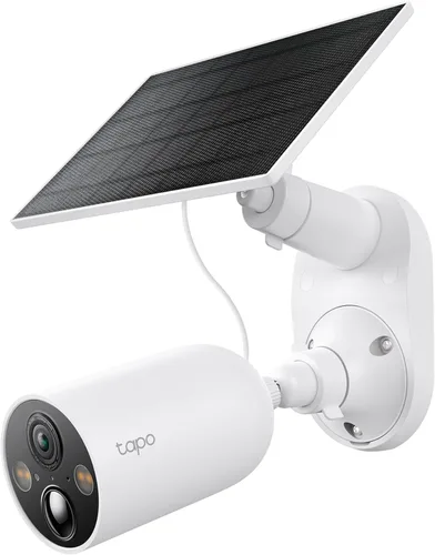 TP-Link Tapo SolarCam 2K, cámara de batería para exteriores con base de panel solar, cámara inalámbrica, 2K QHD, FOV súper amplio de 150°, detección