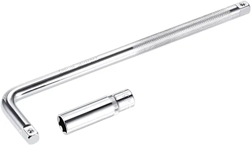 Incluye: enchufe de 6 puntos de 0.512 in de 3/8 pulgadas, longitud total de 2.52 pulgadas; enchufe cuadrado de 3/8 pulgadas, mango de extensión en forma de L de 9.843 in (10 pulgadas). Enchufe de 6 puntos: tiene una apertura de 6 puntos que se adapta perfectamente a la forma hexagonal de los cabezales de cierre, lo que le permite aplicar el par máximo sin deslizarse. Mango de extensión en forma de L: bloqueo de cabeza de enchufe en trinquetes y extensiones, puede aplicar más apalancamiento y torsión; la bola de retención con resorte garantiza que el enchufe esté asegurado. Acero CR-V: construcción de acero de aleación de cromo vanadio para una torsión fuerte de alta resistencia y durabilidad. 【Aplicación】Ampliamente utilizado en la fabricación a mano, mantenimiento eléctrico del hogar y la mayoría de reparaciones generales.