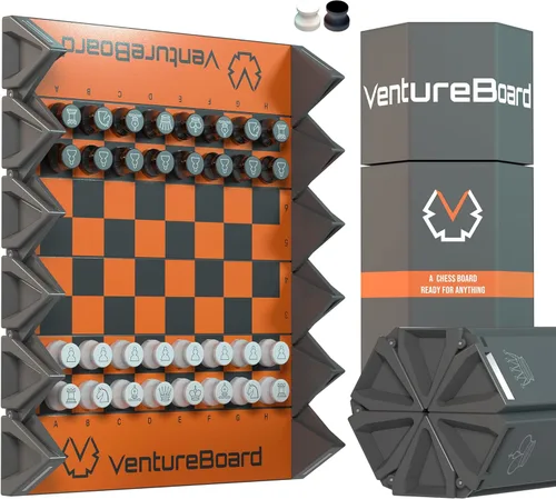 Juego de ajedrez enrollable de diseño único: el juego de ajedrez magnético VentureBoard de 6 pulgadas se enrolla en una carcasa resistente, manteniendo las piezas en su lugar de forma segura. No se requiere configuración, con piezas almacenadas en posiciones iniciales. Ideal para juegos sobre la marcha Tablero de ajedrez portátil: mide 7.5 pulgadas de largo y 6 pulgadas de ancho cuando está abierto, solo 3 pulgadas de diámetro, 6 pulgadas de largo cuando se enrolla, adecuado como un juego de ajedrez de viaje. Se puede llevar y almacenar para jugar en interiores o exteriores Aventura inteligente – Aléjate del mundo digital y sumérgete en un clásico atemporal con los juegos de ajedrez Ventureboard. Es perfecto para paseos en automóvil, después de la escuela o incluso en la playa. Puedes disfrutar del juego dondequiera que vayan. Tablero resistente - Este juego de ajedrez para torneos está construido para durar, con paneles entrelazados que mantienen el tablero firme cuando se enrolla. Incluye 32 piezas de ajedrez, 2 reinas adicionales, una bolsa resistente al agua y calcomanías para reemplazar piezas. Regalo para todas las ocasiones: el juego de ajedrez VentureBoard es un regalo ideal para cumpleaños, aniversarios, Navidad, Año Nuevo o cualquier ocasión especial. Su diseño único y características innovadoras lo convierten en una gran sorpresa para los seres queridos que aman el ajedrez.
