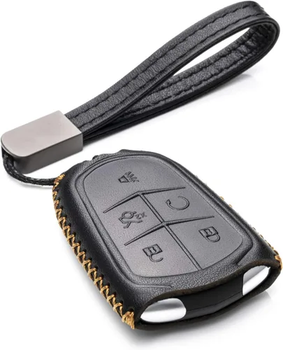 Compatible con Cadillac XT4, Cadillac XT5, Cadillac XT6 (modelos 2019 - 2026) con llavero inteligente de 5 botones. Compara la imagen con tu llave antes de comprar. Esta funda está hecha de 100% piel vacuna de primera calidad. Proporciona una protección completa contra arañazos y desgaste para tu llave. Todos los botones, puertos, sensores permanecen sin restricciones sin comprometer la protección. Esta funda está diseñada para el uso diario. Fácil de instalar, mejora instantáneamente la apariencia de tu llavero inteligente viejo o sucio con control remoto. El paquete incluye: 1 funda de cuero para llaves y 1 correa de cuero para llaves. (Nota: llavero no incluido)