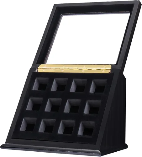 Vitrina para Anillos de Campeonato Caja de Almacenamiento de Anillos Deportivos de Madera con Forro de Terciopelo Negro tamaño 12 Slots y Slanted