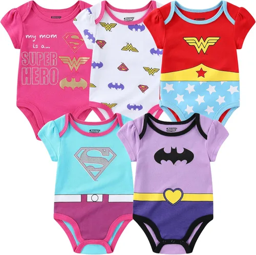 WARNER BROS DC Comics - Body de manga corta para niñas, paquete de 5 unidades para recién nacidos y bebés