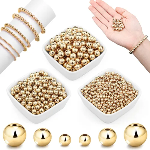 El paquete incluye: recibirás 1200 piezas de cuentas sueltas de oro en 3 tamaños, 600 piezas de 4 mm, 400 piezas de 6 mm y 200 piezas de 8 mm, todas bien pulidas y perforadas, de apariencia brillante y suficientes para que las apliques Ampliamente aplicado: las cuentas espaciadoras redondas son suministros ideales para diferentes tipos de manualidades, tales como collares, aretes, pulseras, colgantes, decoración para colgar en el celular y así sucesivamente. Simplemente apila una pulsera de cuentas doradas en la mezcla, ideal para usar con otros artículos para crear un efecto de capas Suaves y confiables: hechas de material de cuentas de plástico bañadas en cobre, estas cuentas sueltas no tienen ni, son amigables con la mayoría de las pieles, además son ligeras y no se decoloran ni rompen fácilmente, las cuales pueden ser aplicadas durante mucho tiempo Dimensión del producto: las cuentas redondas doradas vienen en 3 tamaños, cuentas redondas de 8 mm con agujero de 1,5 mm, cuentas redondas de 6 mm con agujero de 1,5 mm y cuentas redondas de 4 mm con agujero de 1 mm, por favor verifique el tamaño antes de comprar Regalo de bricolaje: las cuentas espaciadoras doradas son un regalo de bricolaje alegre para amigos o familiares, fáciles de hacer joyas brillantes y llamativas, puedes hacerlas tú mismo a tu manera, para ejercitar la capacidad práctica y mejorar la relación
