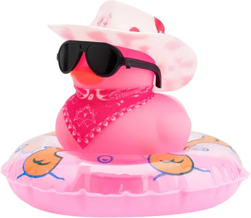 wonuu Decoración de pato de goma para automóvil, accesorios de decoración de tablero de instrumentos de pato vaquero occidental con mini anillo de