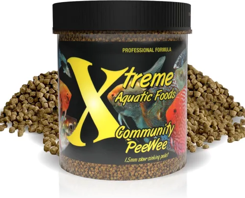 Perfectamente formulado: diseñados para peces tropicales y comunitarios de tamaño pequeño a mediano, estos pellets de hundimiento lento de 0.059 in mezclan kril de agua fría, harina de camarones, harina de calamar, guisantes verdes y más, asegurando una dieta totalmente equilibrada sin hormonas añadidas o rellenos inferiores. Alimentación versátil, colores mejorados: todas las especies de peces aceptan con entusiasmo los pellets de hundimiento lento, atendiendo a los hábitos de alimentación en toda la columna de agua del acuario. Xtreme Community PeeWee Pellets también mejoran los colores naturales de los peces, haciéndolos visualmente llamativos. Promueve la salud vibrante de los peces: la incorporación de estos gránulos en las rutinas de alimentación conduce a mejoras visibles en los colores de los peces y la salud general en 14 días, mostrando la eficacia de la dieta para promover la vitalidad de los peces. Nutrición integral: al ofrecer un perfil nutricional equilibrado y completo sin hormonas añadidas o rellenos deficientes, los pellets PeeWee Community de Xtreme garantizan una salud óptima y mejora del color para una amplia gama de especies de peces tropicales y comunitarios. Nutrición asegurada de calidad: fabricados en los Estados Unidos, estos gránulos no contienen hormonas añadidas, incluyen un paquete de vitaminas y cuentan con ingredientes cultivados en granjas de EE. UU., lo que garantiza una dieta equilibrada y de alta calidad para los peces de tu comunidad.