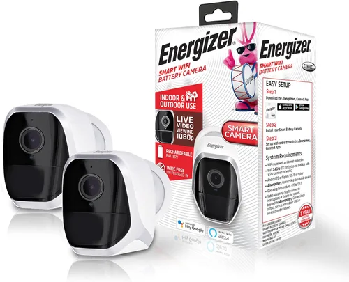 XTREME Energizer Connect - Cámara de seguridad WiFi inteligente recargable inalámbrica con batería, video de 1080p, detección de movimiento PIR,