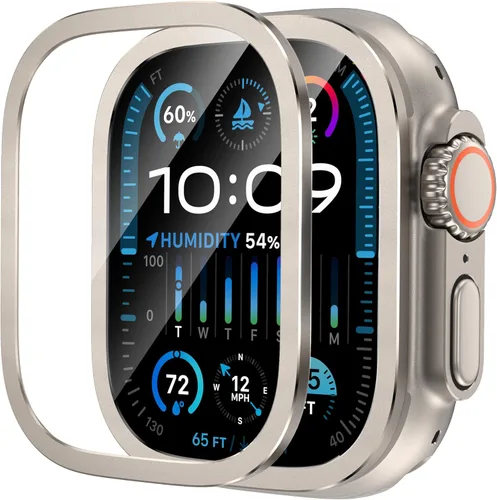 YMHML Funda protectora de pantalla para Apple Watch Ultra 2 de 1.929 in, marco de aleación de titanio 2023 con vidrio templado, funda protectora