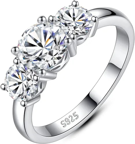 YODEWA - Anillo de compromiso para mujer con 3 brillantes gemas de moissanita de corte redondo montadas en plata de ley