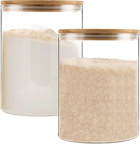 Diseño ecológico y elegante: eleva la estética de tu cocina con nuestro juego de 5 tarros de vidrio con tapas de bambú. No solo proporcionan un aspecto elegante y moderno, sino que también son respetuosos con el medio ambiente, lo que los convierte en la elección perfecta para aquellos que priorizan la sostenibilidad en su estilo de vida. Calidad premium y garantía de seguridad: hechos de vidrio duradero de alta calidad, nuestros frascos están diseñados para soportar los rigores del uso diario. Las tapas de bambú proporcionan un sellado hermético, asegurando la frescura y seguridad de tus alimentos almacenados. Descanse tranquilo sabiendo que nuestros frascos están libres de productos químicos nocivos, lo que los convierte en una opción saludable y confiable para su cocina. Solución de almacenamiento versátil: desde organizar tu despensa hasta almacenar conservas caseras, estos frascos de vidrio son una adición versátil a tu cocina. Su diseño transparente permite una fácil identificación del contenido, y su tamaño es perfecto para almacenar una variedad de productos secos, especias, aperitivos y más. ¡Di adiós al desorden y hola a una cocina bien organizada! Fácil mantenimiento y limpieza: la limpieza es muy fácil con nuestros frascos de vidrio. La superficie lisa hace que sean fáciles de limpiar, y tanto los frascos como las tapas de bambú son aptos para lavavajillas. Simplifica tu rutina de cocina y dedica menos tiempo al mantenimiento, lo que te permite concentrarte en disfrutar de los beneficios de nuestro juego de tarros de vidrio premium. Regalo Perfecto para Amigos Conscientes de la Salud: ¿Buscas un regalo considerado y práctico? Nuestro juego de tarros de vidrio con tapas de bambú es un regalo ideal para amigos y familiares que valoran las opciones saludables. Es una forma elegante de fomentar un estilo de vida libre de plástico mientras promueve el uso de materiales sostenibles en la cocina.