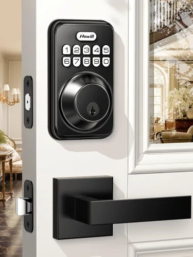 Acceso sin llave: La cerradura de puerta con teclado y manija admite múltiples formas de acceso: 20 códigos de usuario, código de una sola vez, 2 llaves de respaldo. Proporciona diferentes métodos de desbloqueo para familiares, amigos, limpiadores y huéspedes del hotel. Función de bloqueo automático: Simplemente mantén presionada cualquier tecla durante 2 segundos o ajusta la cerradura de puerta sin llave automáticamente en 10 a 99 segundos para evitar olvidar el bloqueo de la puerta mientras se sale a toda prisa. Cerrojo de seguridad con teclado: La cerradura de la puerta ha pasado hasta 100,000 veces la prueba de uso, resistencia a la presión de apariencia 2000N y tiene certificación ANSI grado 3, hecha de aleación duradera para proporcionar seguridad adicional. Duradera y resistente al agua: Cerradura de puerta con teclado de larga duración de la batería, función de alerta de batería baja, 4 pilas AA (no incluidas) que pueden durar más de 1 año. La calificación IP54 garantiza que llueva o haga sol, tu puerta frontal está protegida. Multifuncional: La cerradura de puerta Zowill incluye 2 manijas de palanca y bloqueo de cerrojo con teclado, con modo de silencio retroiluminado, modo de vacaciones para cubrir tus necesidades. Puede aplicarse a todo tipo de diseño de decoración para puerta delantera, puerta lateral o puerta trasera en una casa particular, apartamento o alquiler a corto plazo.